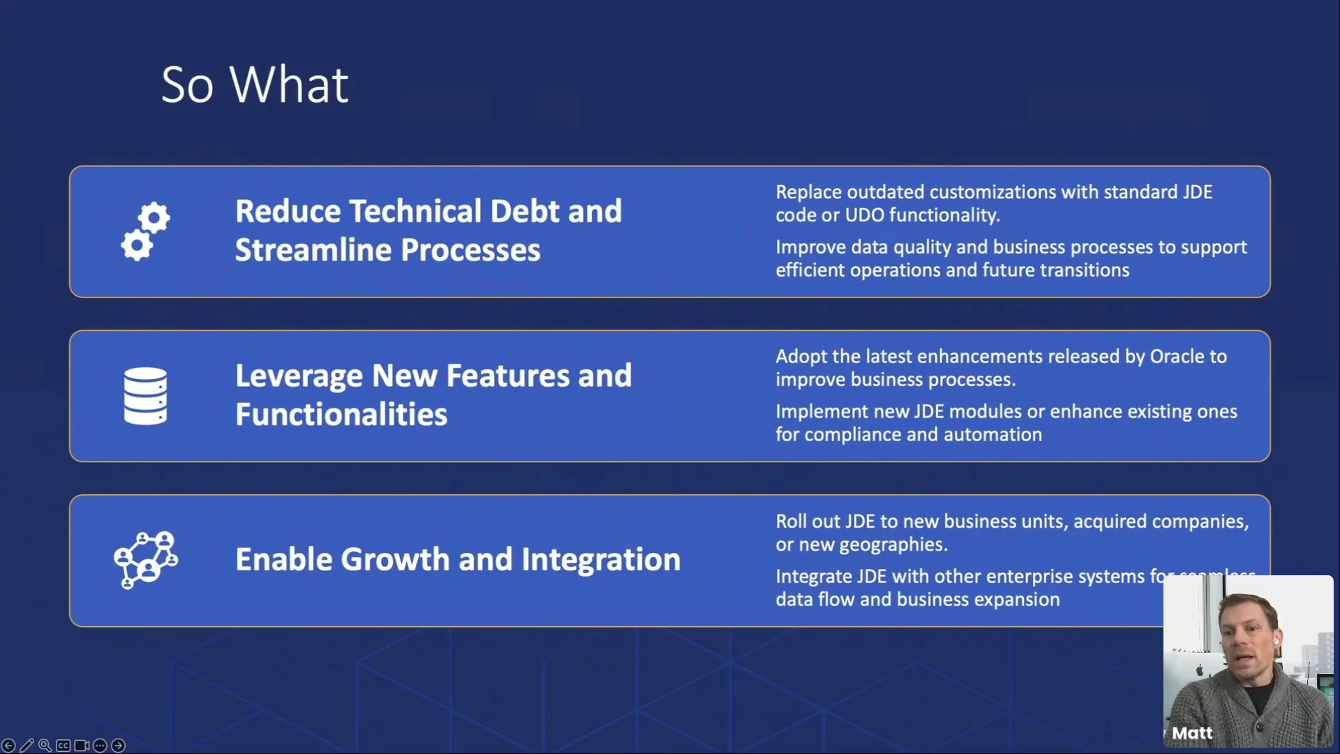 Join us for a focused 30-minute webinar designed for business leaders, IT directors, and application managers who want to extend the value of their JDE investment without the disruption of a full ERP replacement.