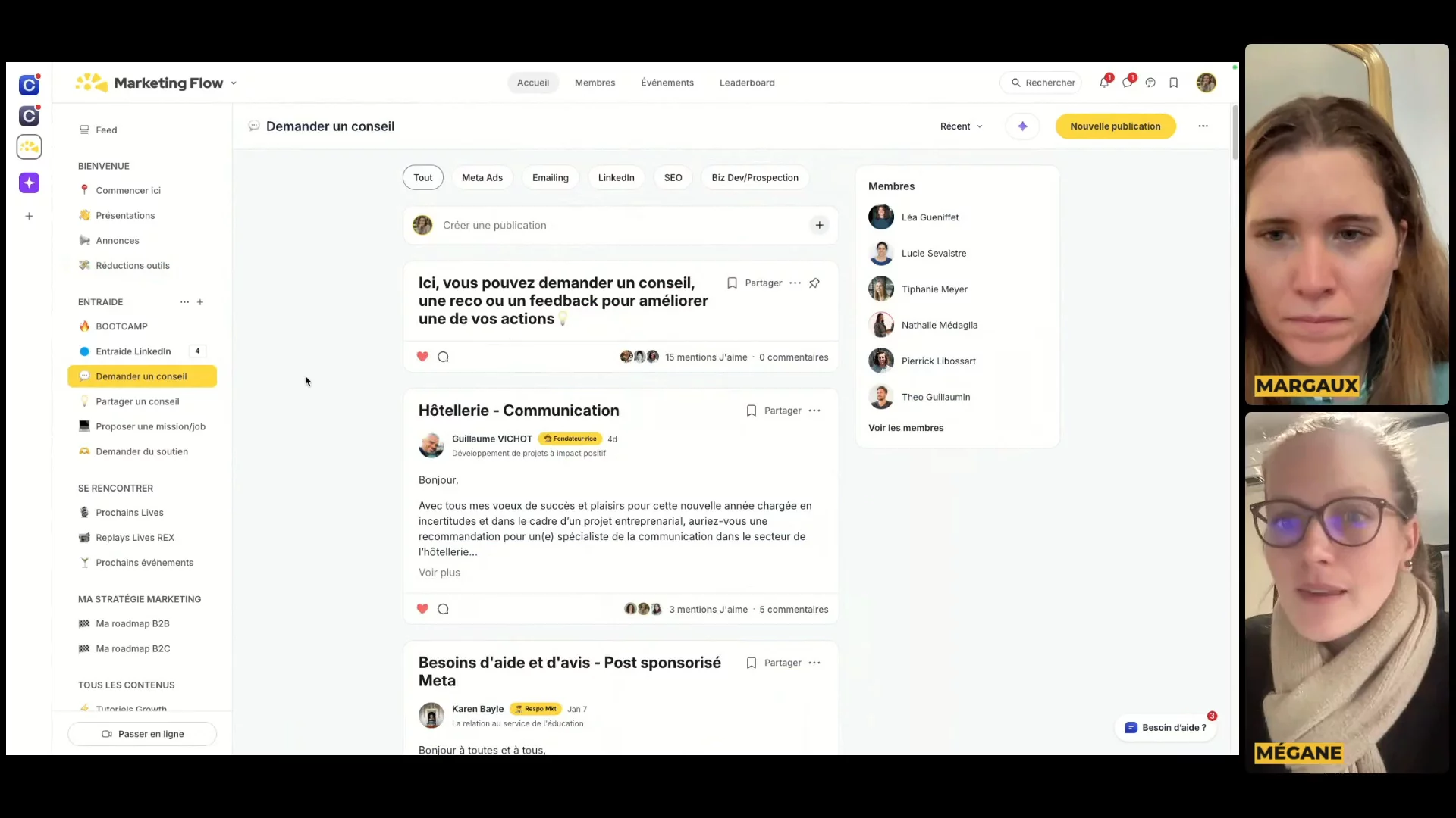 C'est Mégane, la co-fondatrice de Marketing Flow. Je te propose de me rejoindre en visio pour une démo de notre belle communauté.