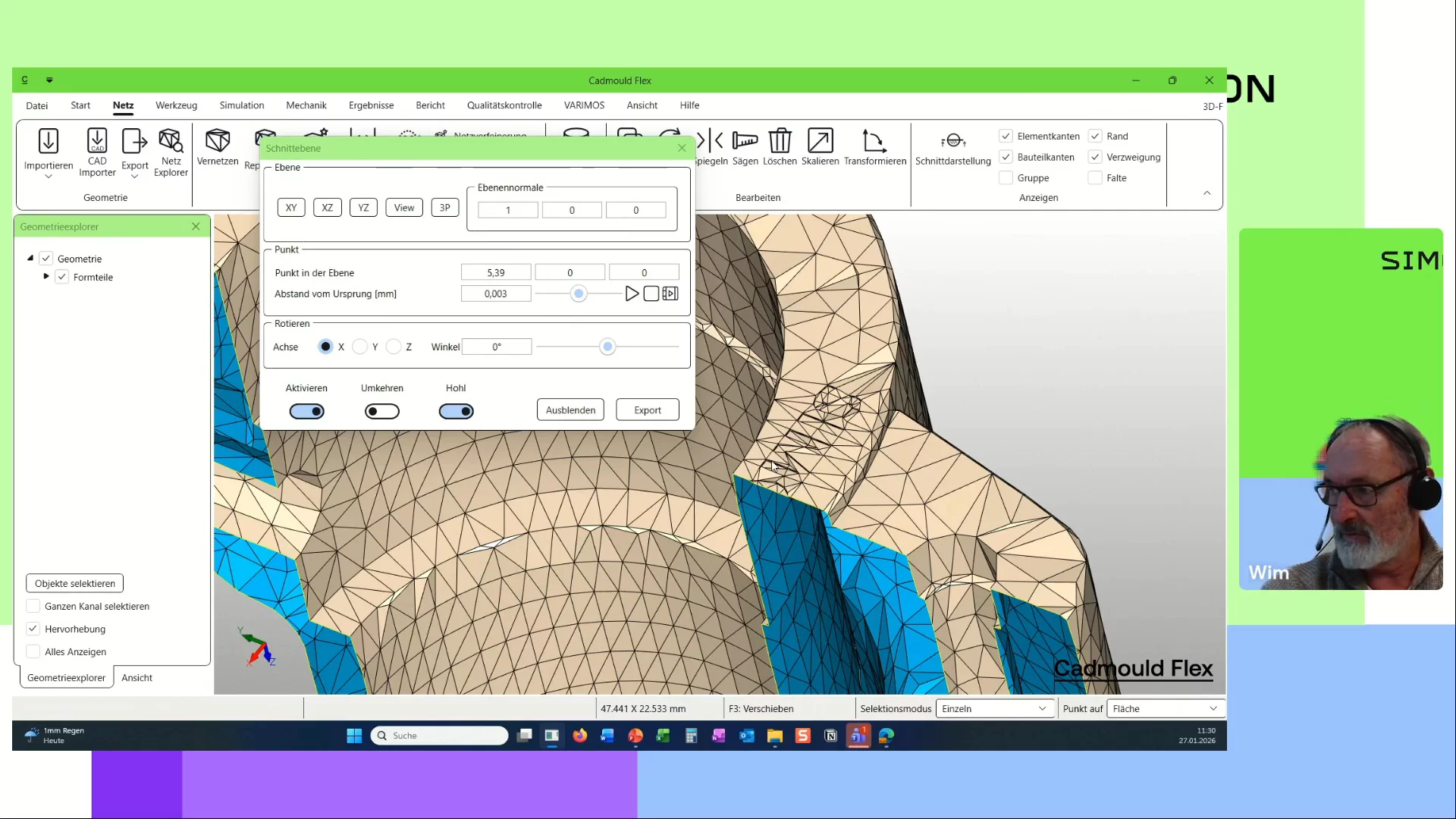 - Wichtige Funktionen für die Netzvorbereitung: Vernetzung, Gruppierung, Netzverfeinerung und lokale Wandstärkenanpassung direkt in Cadmould Flex.